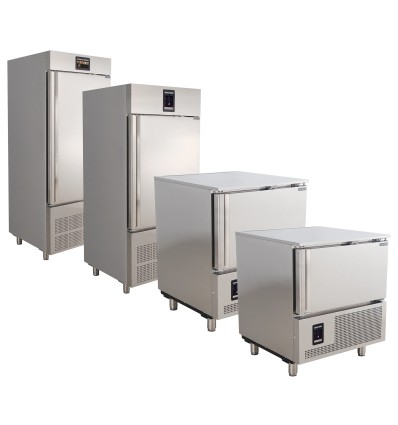Vores blæstkøler serie er perfekt til hurtig nedkøling eller nedfrysning af varm mad fra komfuret eller ovnen på en hygiejnisk måde. BLCA-X har en touchskærm, der er nem at betjene. Her kan du vælge mellem de forudinstillede programmer eller du kan lave og gemme dine egne programmer. Kabinettet kommer med forudinstallerede special programmer til is, tørring, fisk, og optøning. Det er muligt at uploade dine egne opskrifter eller downloade HACCP data i forbindelse med egenkontrol via et USB stik. Primære programmer er forudindstillet til at holde temperaturen fast ved afslutning af programmerne, indtil kabinettet åbnes eller programmet bliver slukket. Denne metode sikrer madens kvalitet og konservering af maden, så den kan opbevares og spises senere uden problemer. Kølekapaciteten måles fra +70 til +3 °C på 90 minutter og frysekapaciteten måles fra +70 til -18 °C på 240 minutter. Enhedernes nøjagtige kapacitet i kg for henholdvsis køl og frys kan findes under de tekniske specifikationer for hver model. BLCA-X er velegnet til både gastronorm 1/1 og euronorm kantiner (ikke inkluderet).