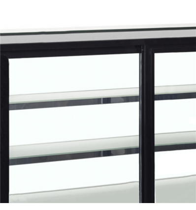 Denne kølemontre med buet glasfront byder på høj kvalitet i rustfrit stål og dobbeltglas. Den kompakte størrelse gør den ideel til at stille på disken, hvor den kan friste kunderne med et udvalg af udsøgt bagværk. På bagsiden har udstillingsmontren skydedøre i glas, som giver let adgang til indholdet. Bordmodellen kommer med faste trådhylder og LED belysning for optimal